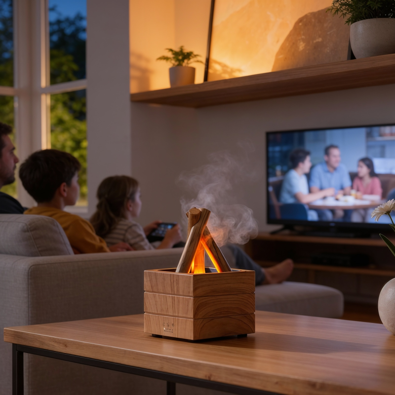 Een vriend(in) raadde de kampvuur luchtbevochtiger aan. Nu heb ik er één thuis en één op mijn werk! Het zachte vlam-effect en de aroma maken mijn ruimte bijzonder.