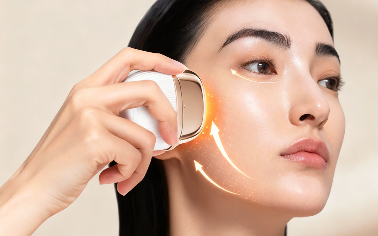 EMS-golven richten zich op gezichtsspieren om verslapping snel te verminderen. Versterkte microstromen trainen de gelaatstrekken, waardoor wangen en kaaklijn sterker afgetekend worden.