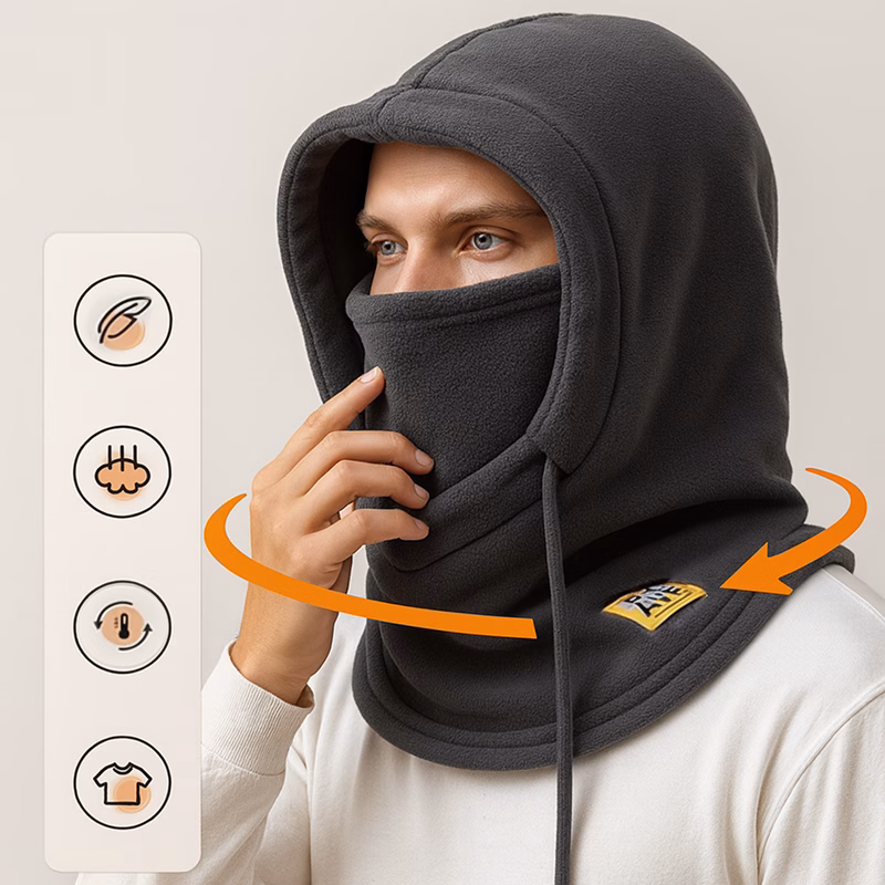 Hoofd, gezicht en nek worden allemaal tegelijk beschermd. Je hebt nooit extra lagen nodig bij guur weer.
