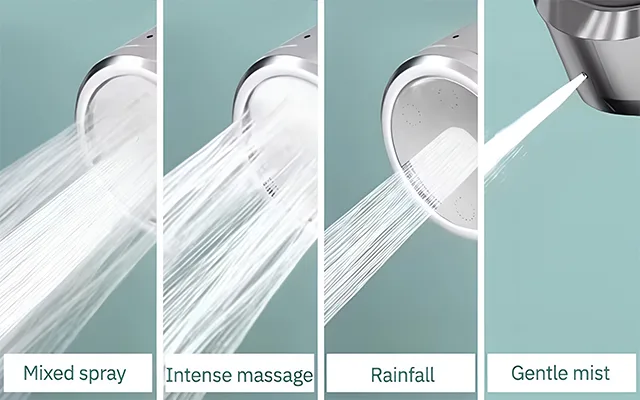 Je kunt kiezen tussen een zachte nevel, intense massage, regenval, en een gecombineerde sproei. Elke stand biedt een unieke sensatie voor ontspanning en comfort.