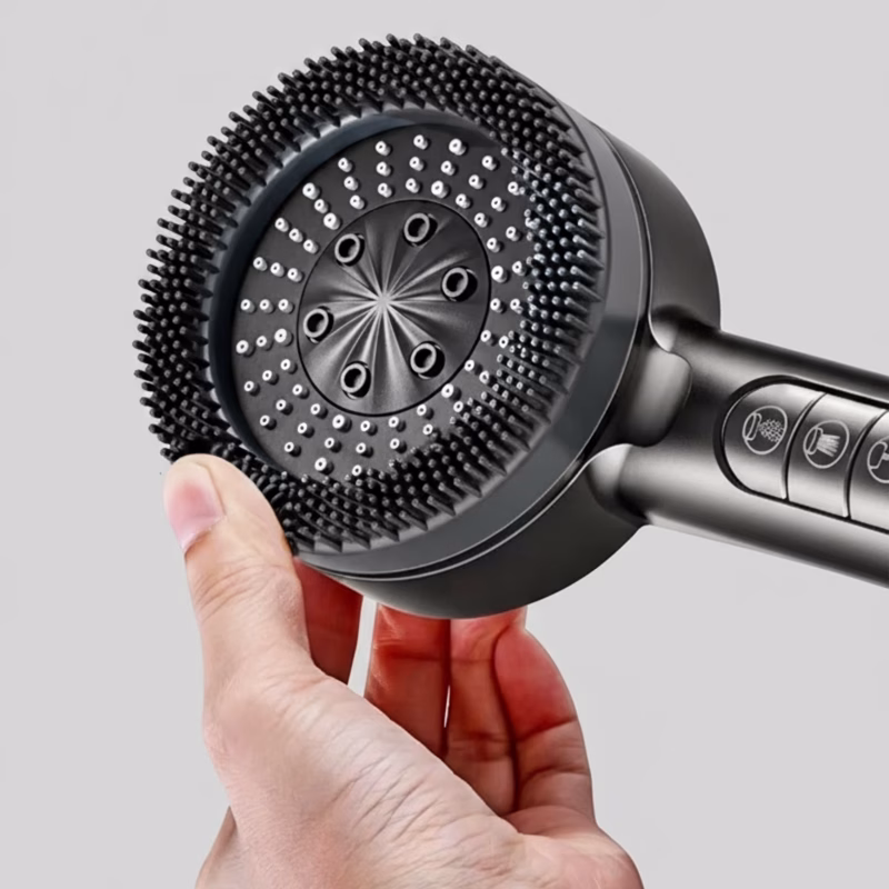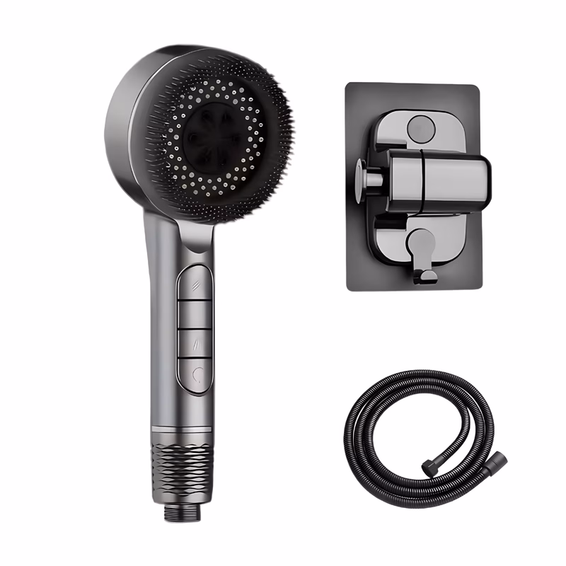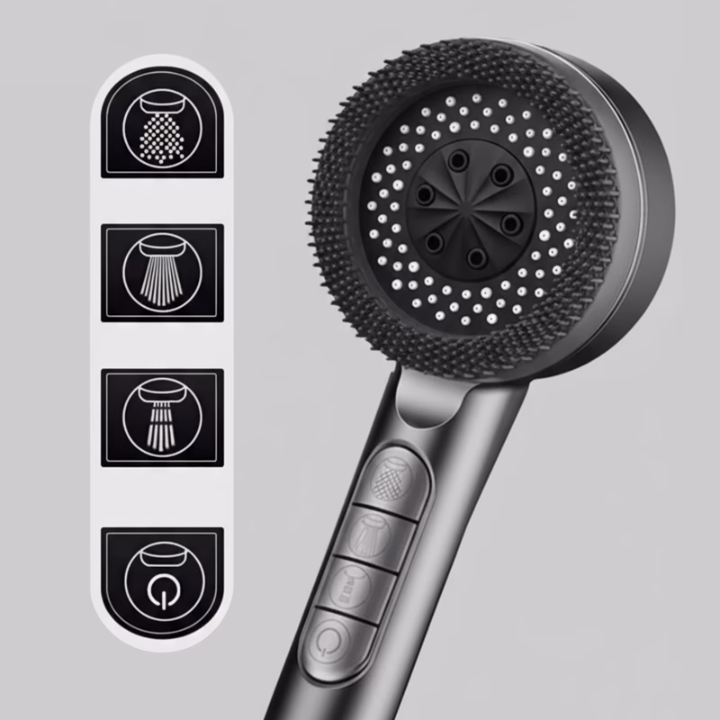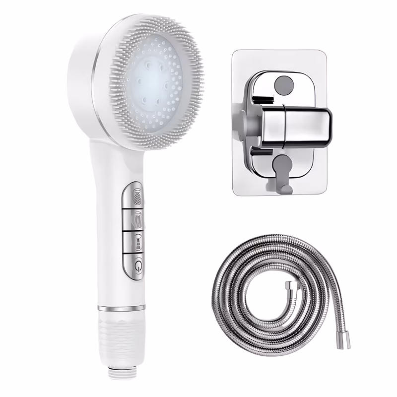 De siliconen borstel verwijderde gemakkelijk zeepresten. Mijn douches voelen nu als een dagelijkse traktatie. De insta-stopknop is super handig.
