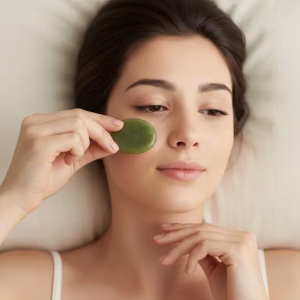 Kalmeer de stress van de dag met dit jade oogmasker! Het vermindert wallen en donkere kringen, waardoor je gezicht er fris en stralend uitziet.