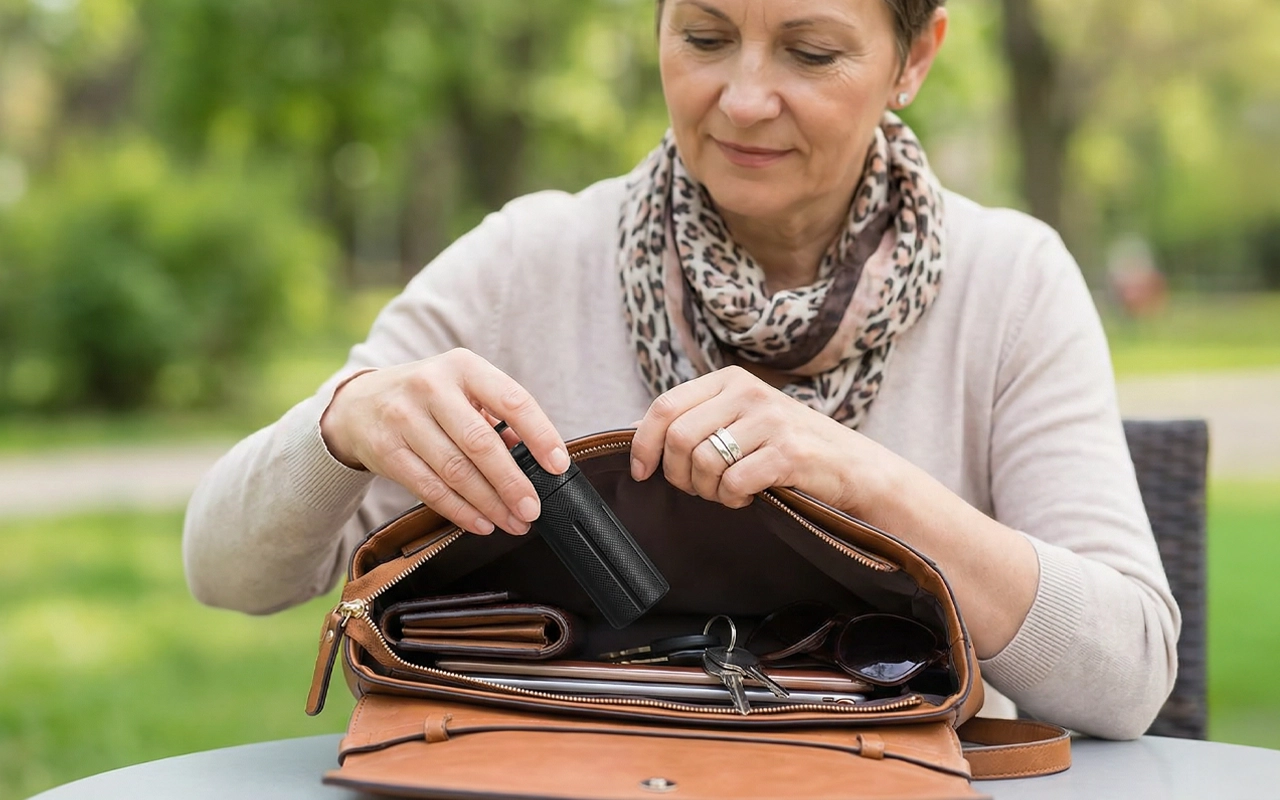 Ik maak hem vast aan mijn riemlus voor werk. Bespaart me de stress van mijn medicijnen vergeten en ik hoef niet meer in mijn tas te zoeken.