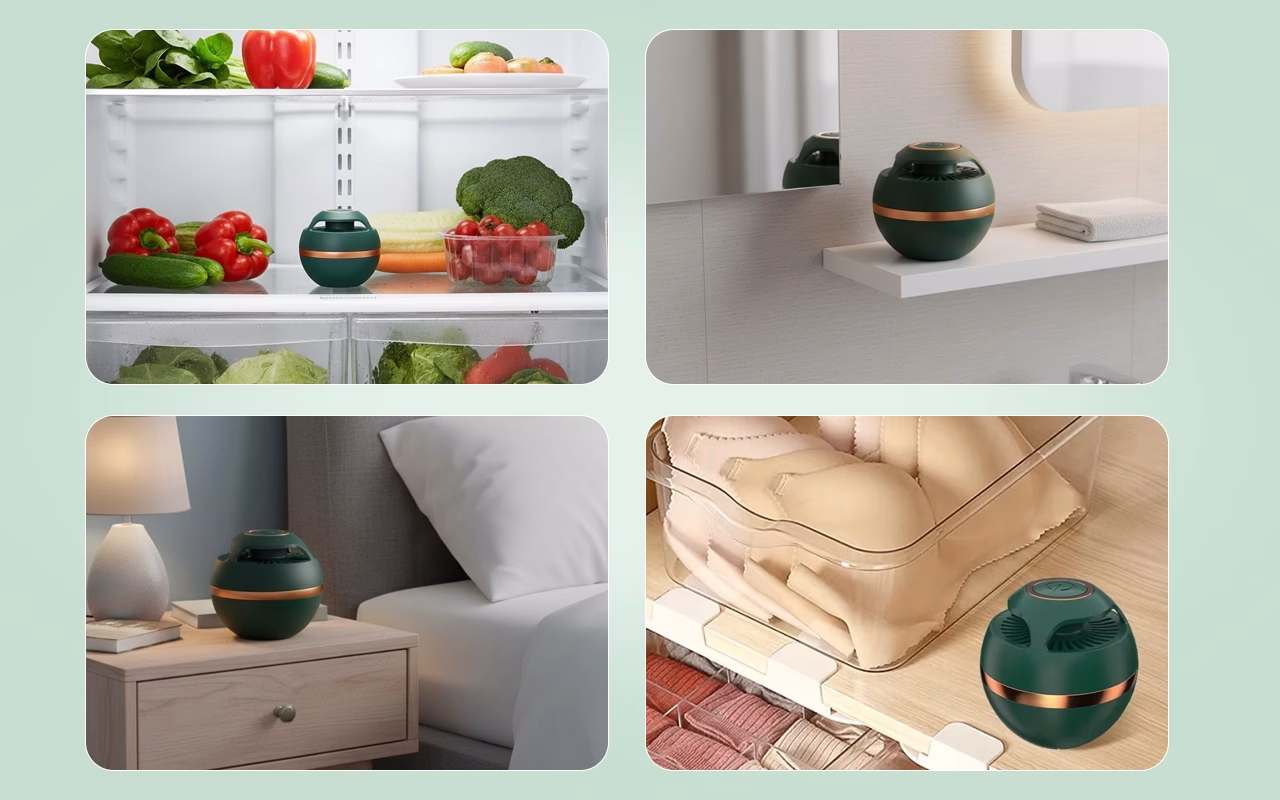 Ortorex Kitchen Air Purifier past perfect overal waar u versheid nodig heeft. Gebruik hem voor kledingkasten, auto's, badkamers of zelfs dierenruimtes.