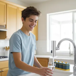 Hoge flessen vullen kost nu geen moeite meer. De lange slang reikt overal in mijn gootsteen, en hij is eenvoudig te gebruiken voor mijn dochter tijdens klusjes.