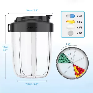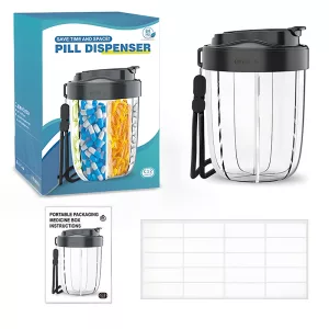 Soepel schroefdraad en een flexibele deksel voorkomen morsen of vastlopen. Grote openingen maken het eenvoudig om op elk moment supplementen te verwijderen.