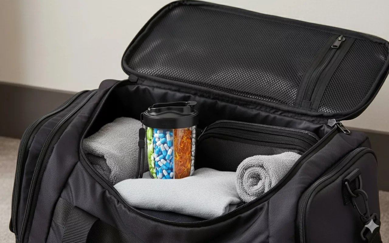 Deze organizer schuift zo mijn sporttas in. Houdt pillen gescheiden en ik vind het fijn dat het plastic veilig is voor mijn snacks en vitamines.