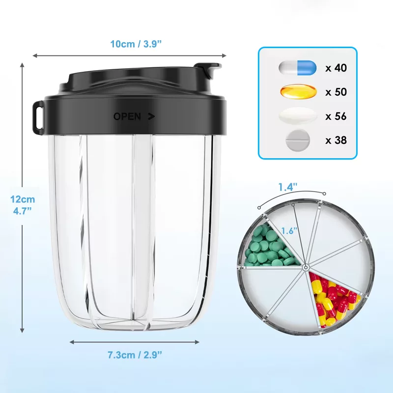 Super makkelijk te openen en te vullen. De grote vakjes zorgen ervoor dat ik mijn tabletten snel kan pakken elke ochtend vóór ik de kinderen naar school breng.