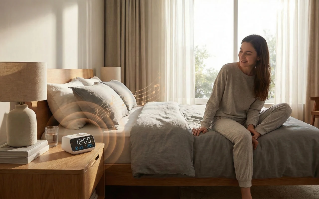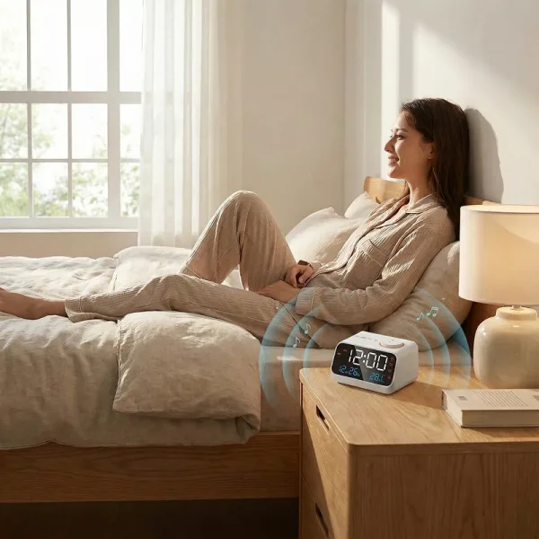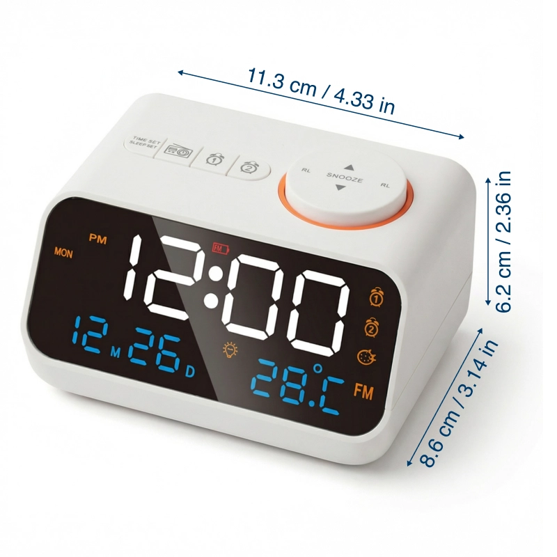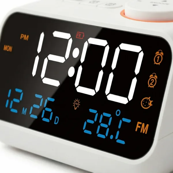Stel twee aparte alarmen in om routines eenvoudig en betrouwbaar te houden. Kies zachte muziek of een levendig radiostation om rustig en klaar voor de dag wakker te worden.