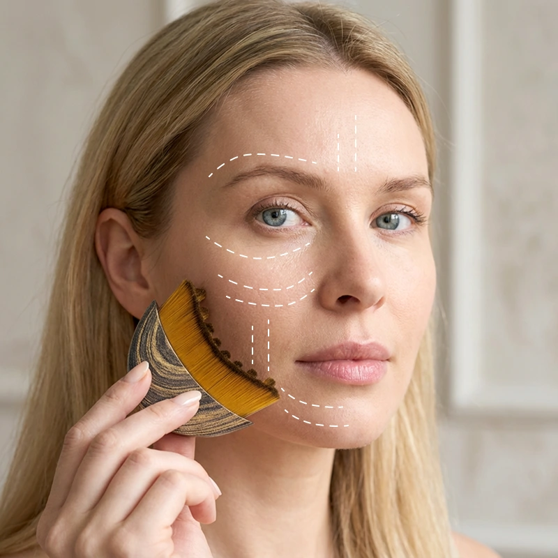 Ervaar elke ochtend en avond gemakkelijk een fris gezicht. De Ortorex-borstel pakt wallen en spanning aan met eenvoudige bewegingen. Geniet van verzachtende verzorging zonder hard trekken of krassen. De ergonomische vorm past perfect op alle gezichtscontouren. Bereik zichtbare resultaten thuis of tijdens professionele sessies.
