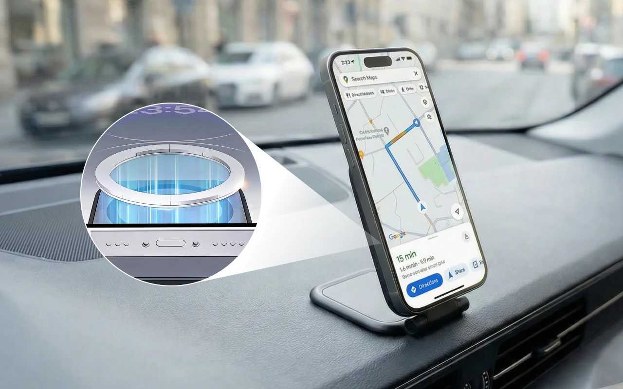 Je apparaat blijft stabiel in scherpe bochten of op hobbelige wegen. De krachtige magnetische grip zorgt ervoor dat het nooit uit zijn plaats glijdt.