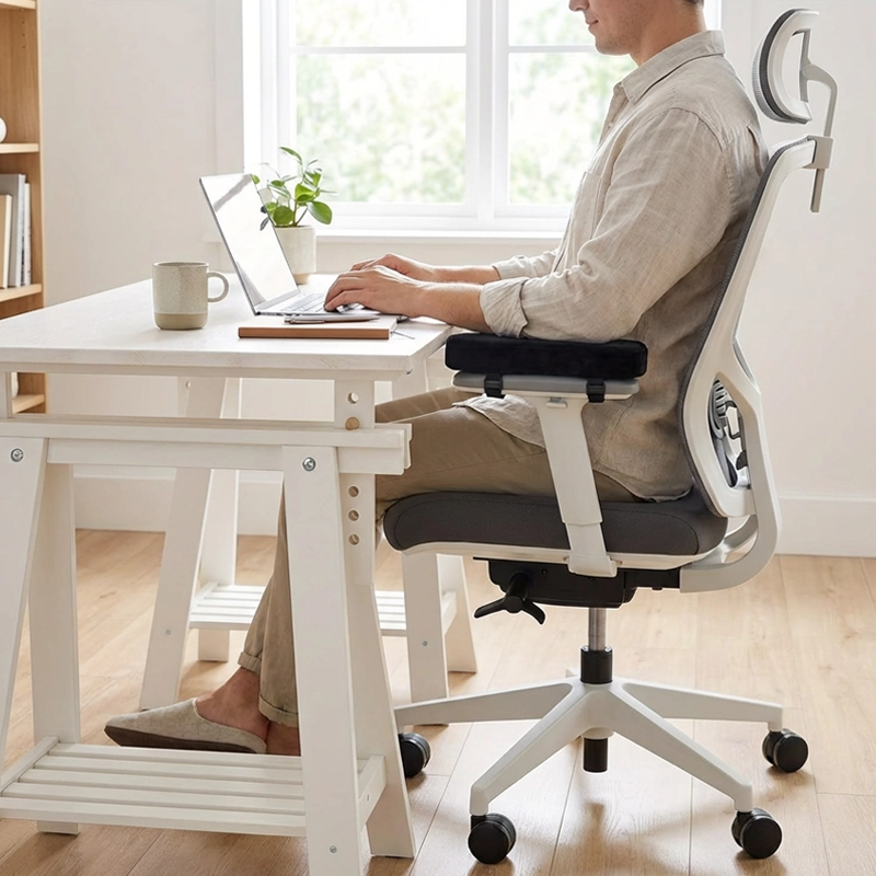 Mijn ellebogen drukten de hele dag tegen hard plastic. Met deze pads omsluit het traagschuim mijn armen zachtjes en kan ik me eindelijk concentreren in plaats van wiebelen.