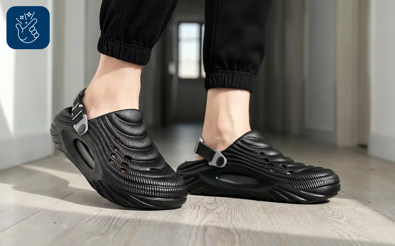 Schuif je Ortorex-klompen snel aan voordat je naar buiten gaat. Geen veters of bandjes betekent dat je elke dag tijd bespaart.