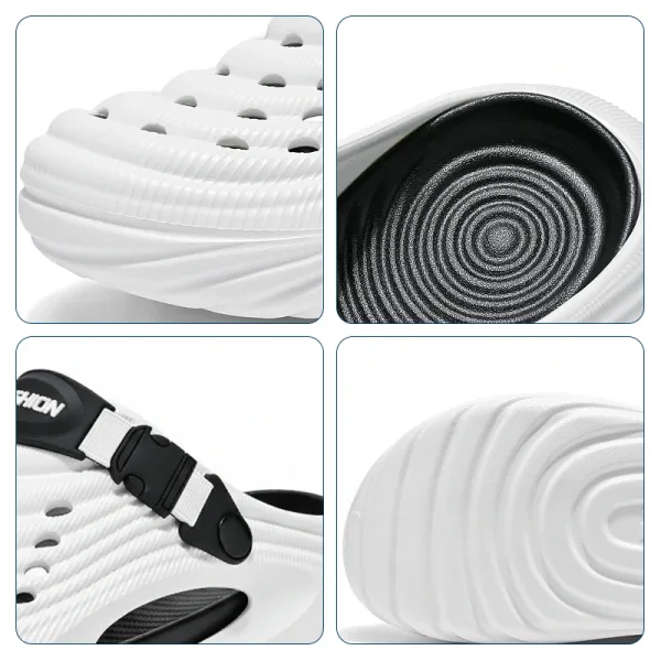 Ventilatiegaatjes laten water snel weglopen na een strandbezoek. Je voeten blijven droog en fris, zelfs na natte buitenactiviteiten.
