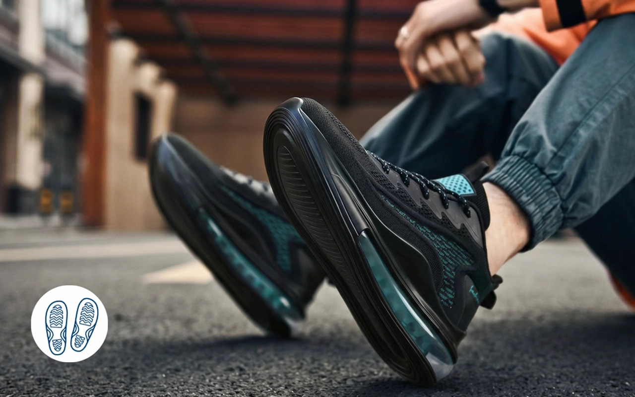 Gripvaste buitenzool helpt uitglijden op gladde vloeren te voorkomen. Stevige grip geeft vertrouwen op trappen en stoepranden.