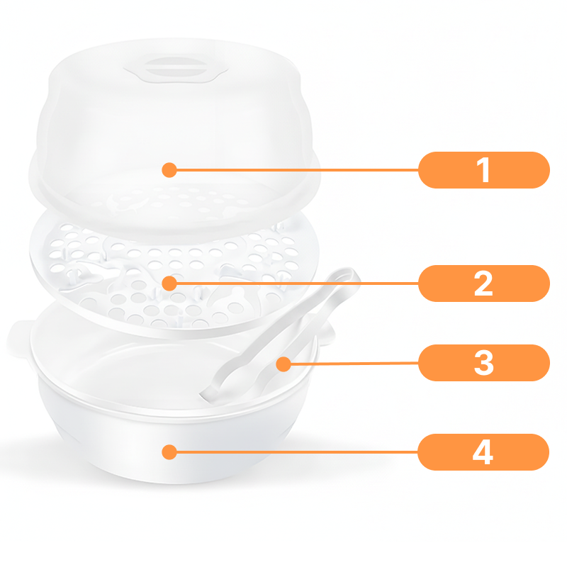 Ortorex flesstoomsterilisator gebruikt BPA-vrij plastic. Geen schadelijke chemicaliën komen in contact met de flessen of fopspenen van je kind.