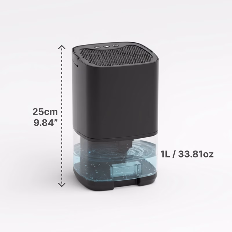 Erg blij met deze luchtdroger. Hij past mooi op mijn boekenplank, werkt heel stil en zorgt ervoor dat mijn slaapkamer minder benauwd aanvoelt.