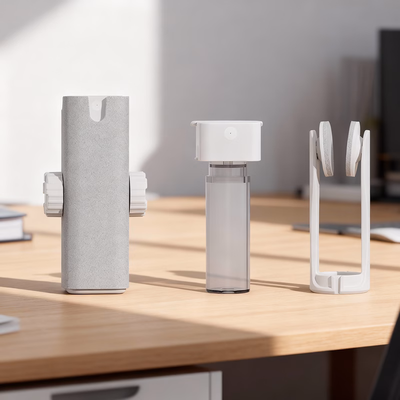 Reinig zowel brillen als schermen met één slim apparaat. Bespaar tijd en voorkom dat je dagelijks meerdere reinigingsmiddelen mee moet nemen.