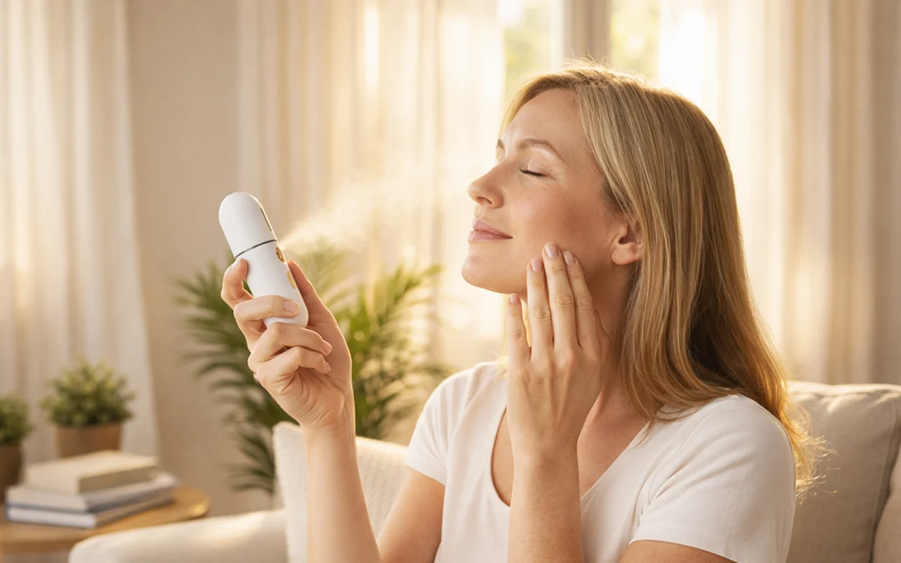 Na een lange dag voelt mijn gezicht meestal droog aan, maar nu gebruik ik dit mini ding een paar seconden en het voelt zoveel beter.