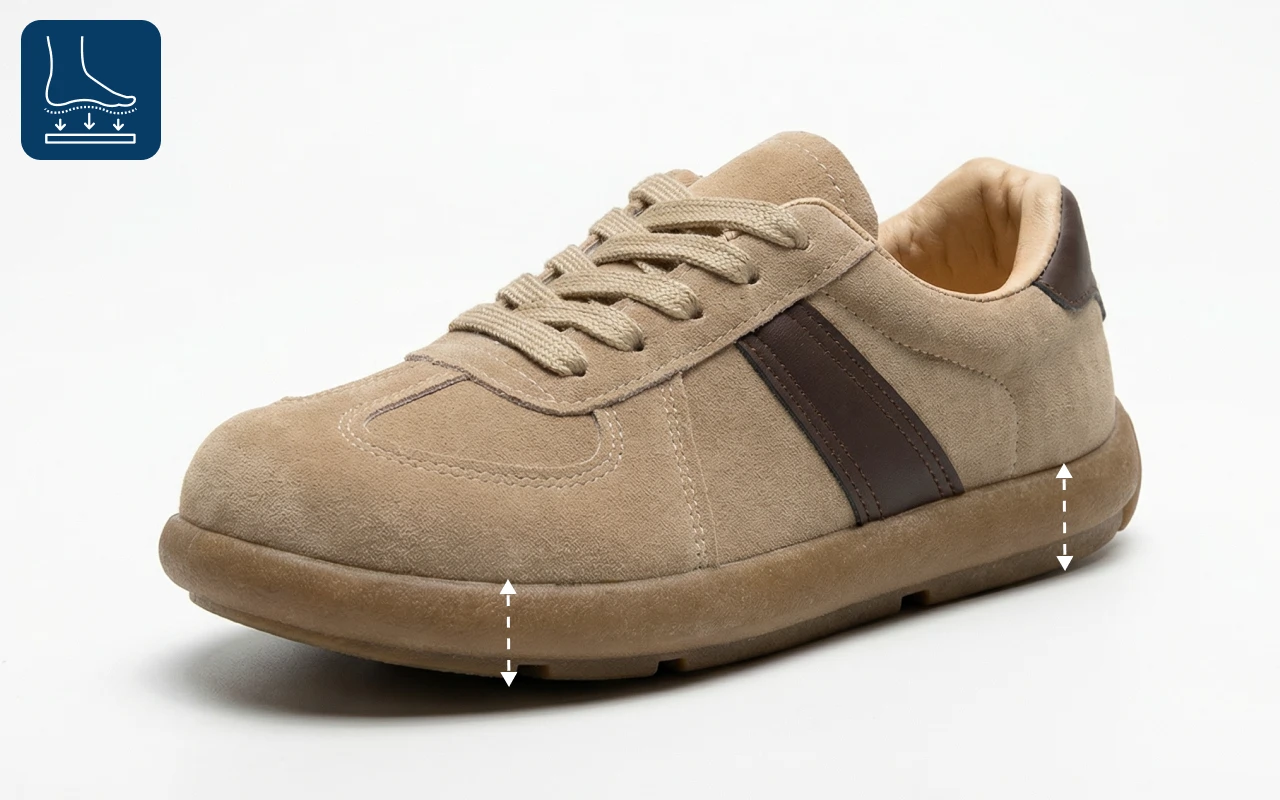 Gebalanceerde zolen zorgen voor stabiel lopen en een betere uitlijning van de voet. Een verbeterde houding betekent minder vermoeidheid tijdens lange dagen op je voeten.