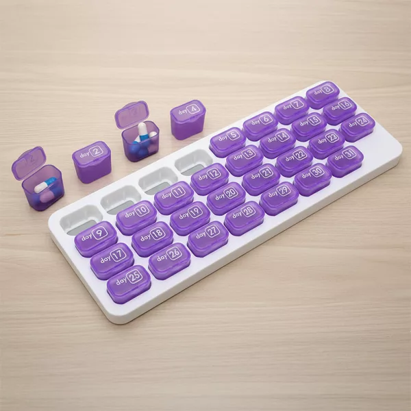 Neem de controle over dagelijkse doses met eenvoudig genummerde pods. Ortorex maakt het opslaan van vitamines en medicijnen eenvoudig voor iedereen. Plan vooruit voor eenendertig dagen zonder verwarring of stress. Elke pod houdt alles zichtbaar, veilig en beschermd gedurende de hele maand.