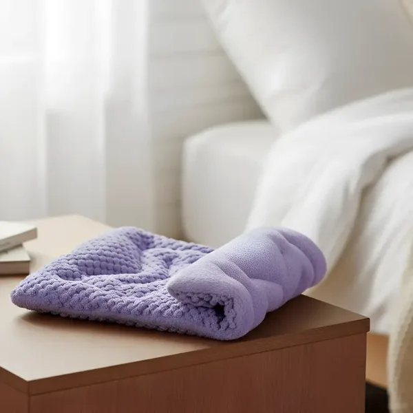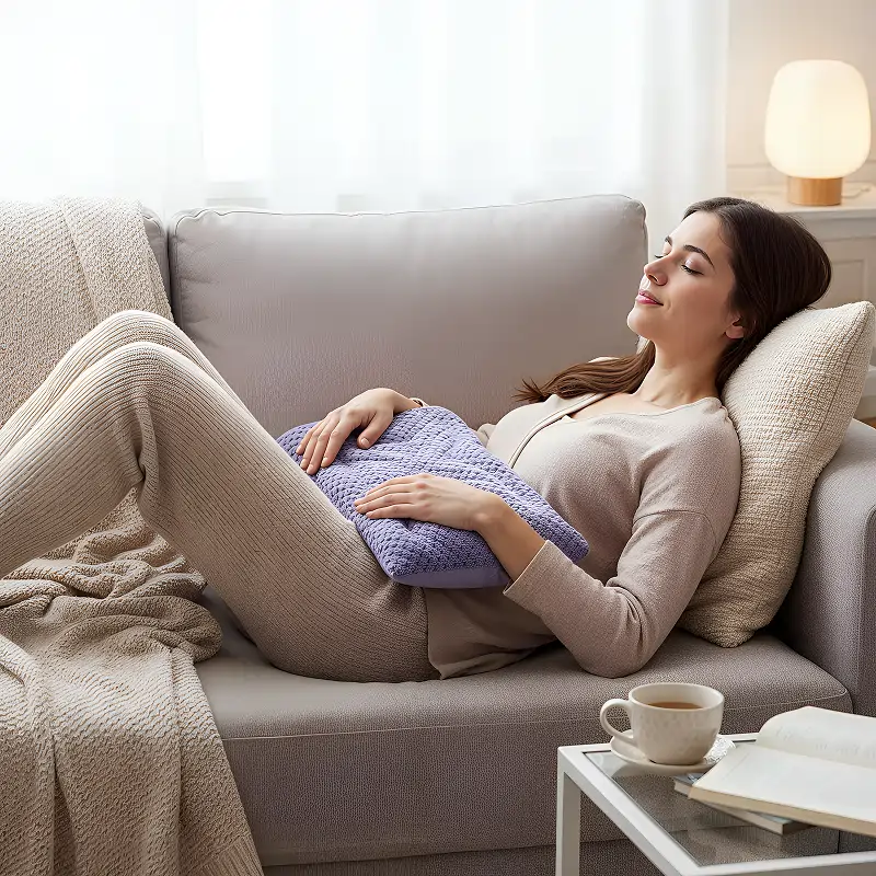Deze zachte fleecewikkel is mijn favoriet op koude avonden. Ik warm hem op, leg hem over mijn buik en hij verlicht krampen en helpt me te ontspannen.
