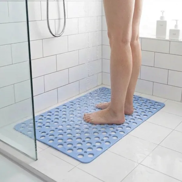 Onze tiener liet steeds plassen in de douche achter, dus ik heb deze mat besteld. Nu voelt de vloer stevig aan en het getextureerde oppervlak houdt mijn voeten elke ochtend tevreden.