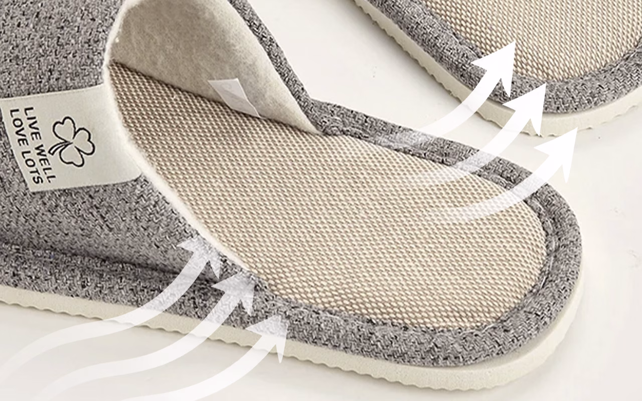 Katoen-linnenmix laat lucht circuleren en voorkomt zweterige voetzolen. Geniet van zachte stof die de huid de hele dag ontspannen houdt.