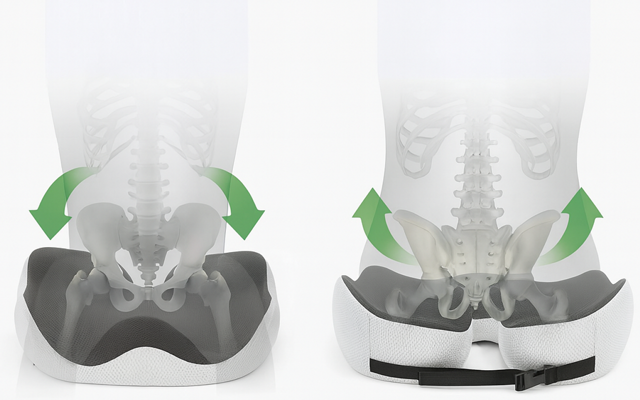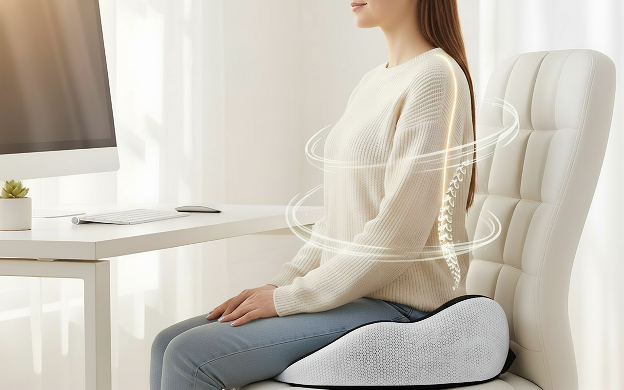 Langdurig zitten op harde stoelen veroorzaakt snel pijn en vermoeidheid. Het Ortorex-kussen ondersteunt je onderlichaam en houdt je ontspannen. Geen pijnlijke heupen of dove benen meer tijdens werk, autorijden of rusten.