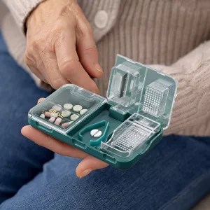Drie belangrijke functies gecombineerd in één eenvoudig apparaat. Bewaar, deel en vermaal tabletten zonder rommel of gedoe.