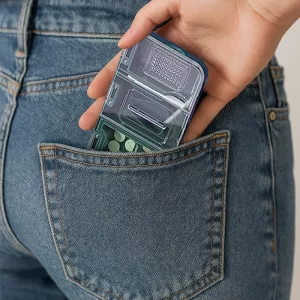 Deze kleine organizer heeft mijn routine veranderd. Mijn ochtendmedicatie verdelen gaat nu supersnel, en ik kan ze in mijn rugzak stoppen zonder me zorgen te maken dat ze nat worden.