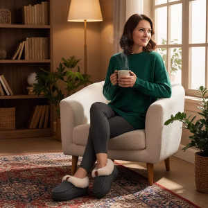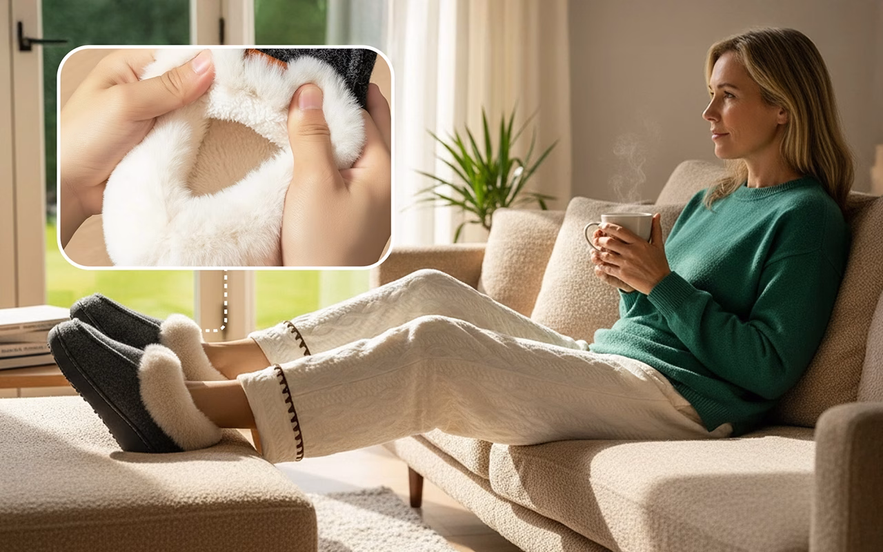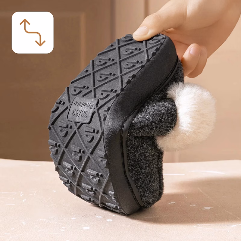 Dikke pluche voering omhult je voeten in zachte zachtheid. Perfect voor koude ochtenden of om na het werk binnenshuis te ontspannen.