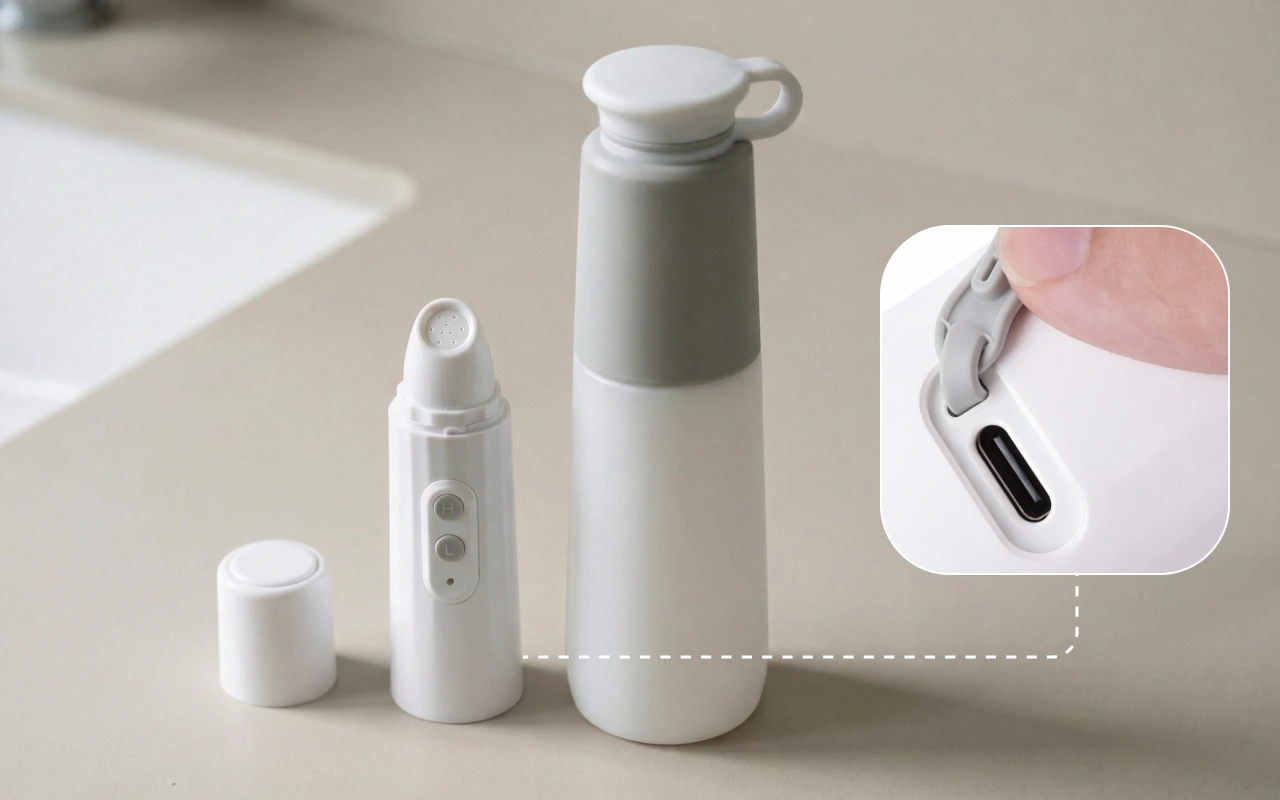 Eerste keer dat ik een mini-sproeier gebruik en wow, hij werkt geweldig. Snel opladen is top. Had willen dat ik dit eerder had gevonden, echt elke dag handig.