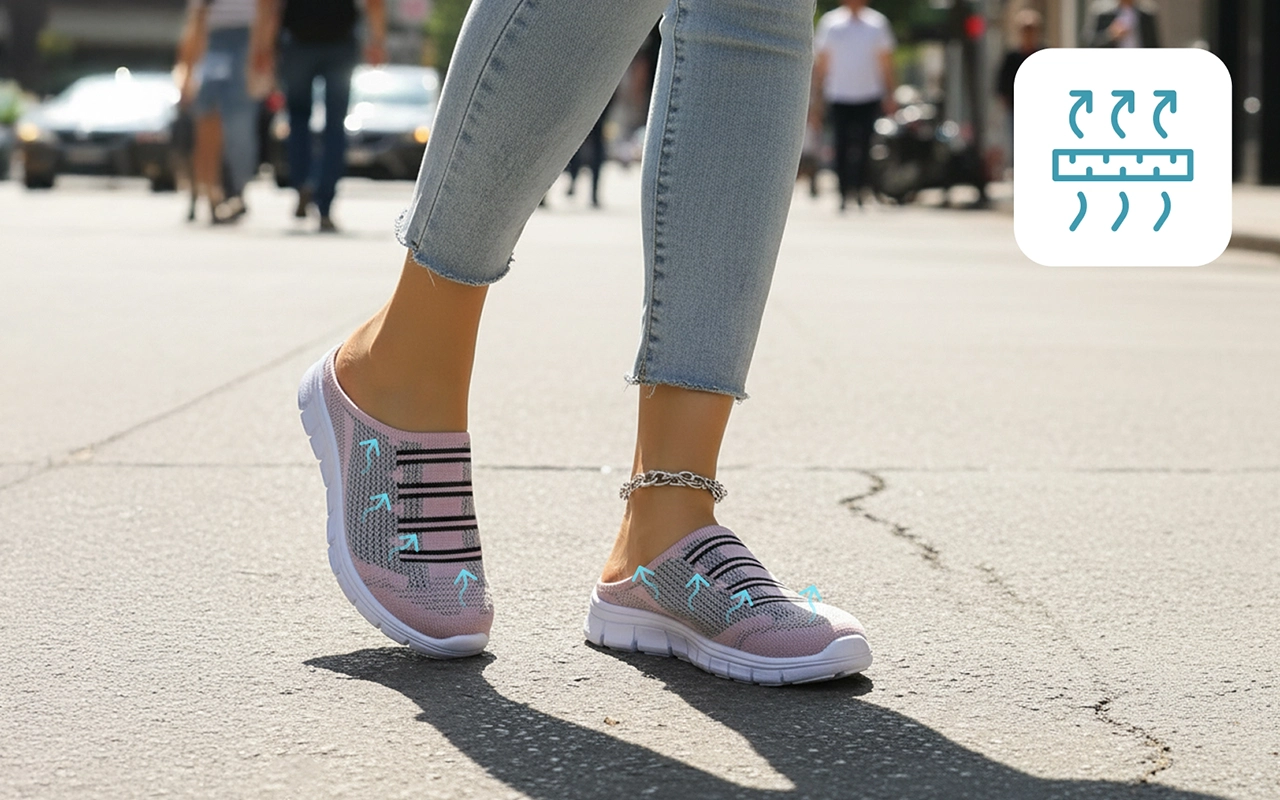 Frisse lucht stroomt door, zodat je voeten nooit zweterig of heet aanvoelen. Meshstof laat vocht ontsnappen voor blije, gezonde huid.