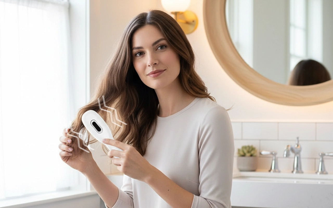 Ik hou van de lichtopties op deze kam. Mijn hoofdhuid voelt prettig aan en de vibratie helpt me ’s avonds te ontspannen. Mijn haar lijkt de laatste tijd ook wat dikker.