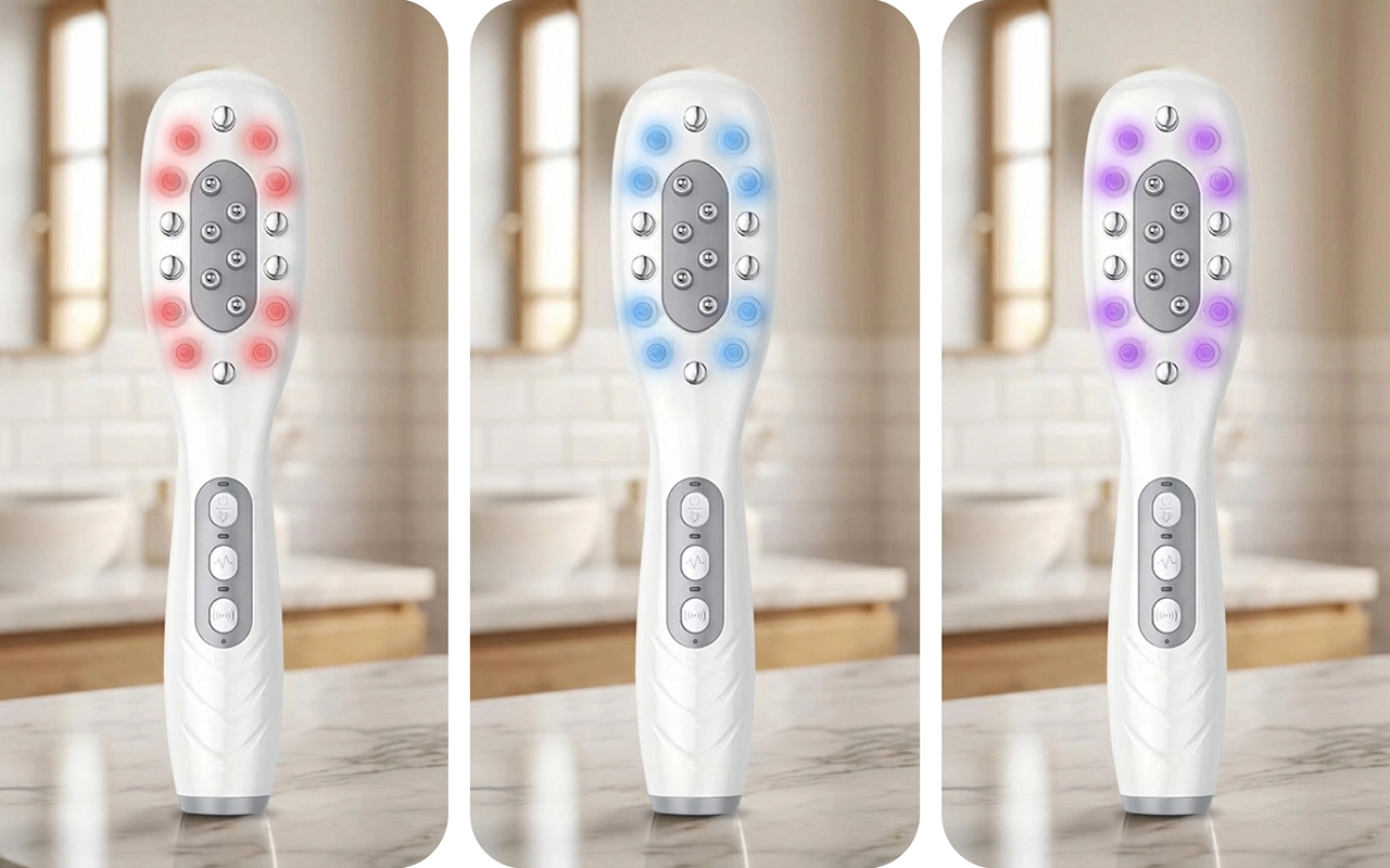 Rood, blauw en paars licht richten zich op verschillende behoeften van de hoofdhuid. Deze standen versterken de haarwortels, herstellen haarzakjes en verminderen snel irritatie.