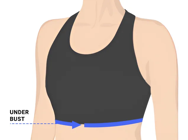 - 2. Om de onderborstmaat te bepalen, plaats je het meetlint rond je borstkas, direct en gelijkmatig onder je borsten.