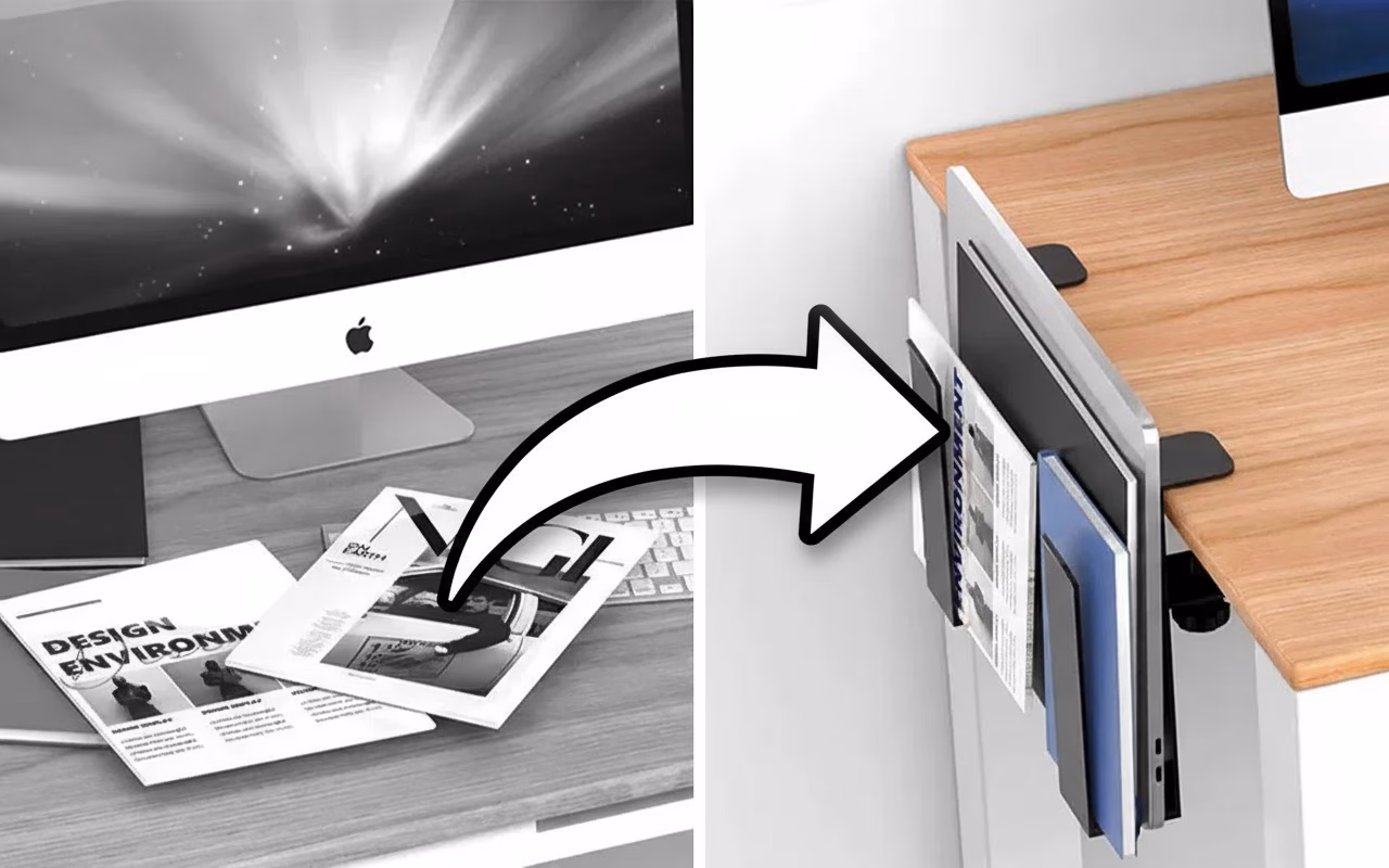 Verminder rommel snel met een slimme houder naast je bureau. Geniet van meer ruimte om te werken, typen of schrijven zonder afleiding.
