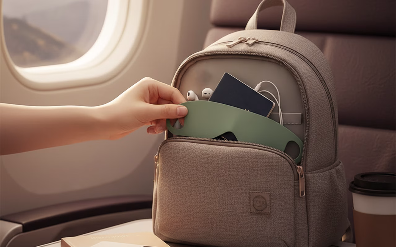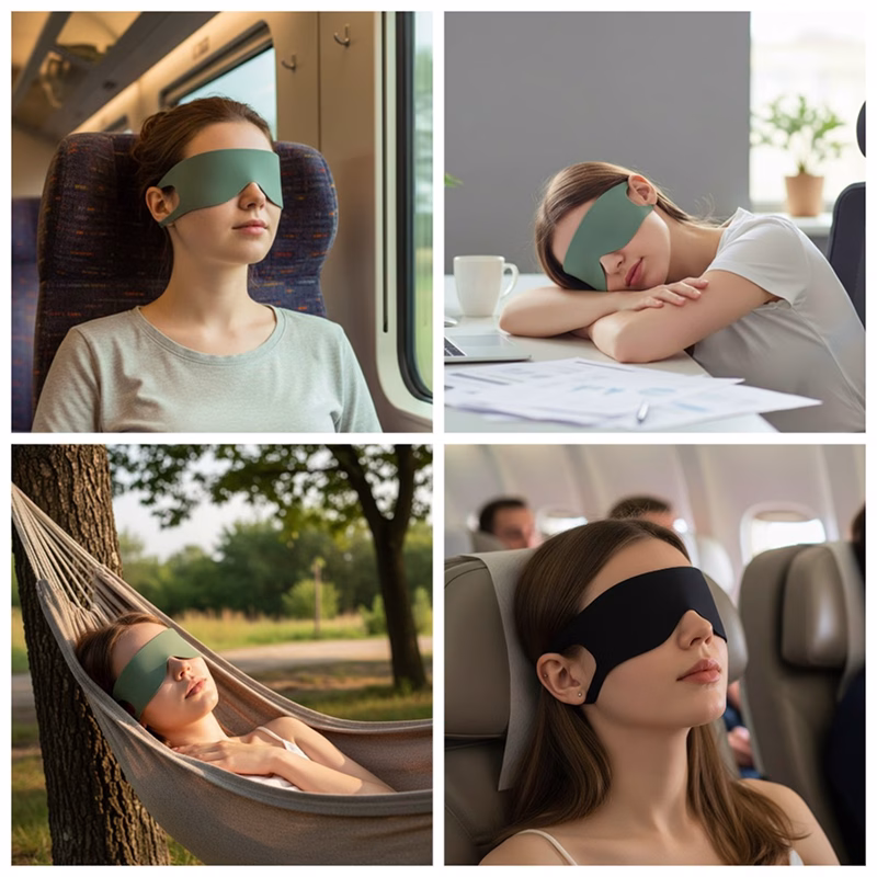 Stop het masker in elke tas of zak voor direct gebruik. Slaap rustig in vliegtuigen, treinen of rumoerige hotelkamers.