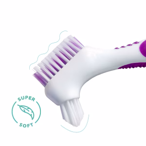 Ik vind deze kunstgebitborstel veel gemakkelijker te gebruiken dan andere. De zachte borstelharen komen echt in de naden, en mijn kunstgebit voelt altijd super schoon aan.
