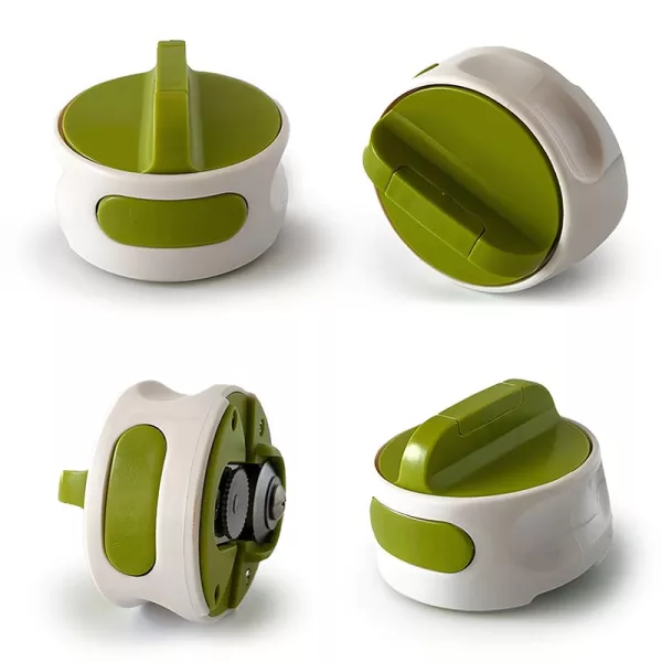 Comfortabele handgreep voorkomt wegglijden tijdens het draaien van elk deksel. Kinderen en volwassenen vinden het eenvoudig en stressvrij.