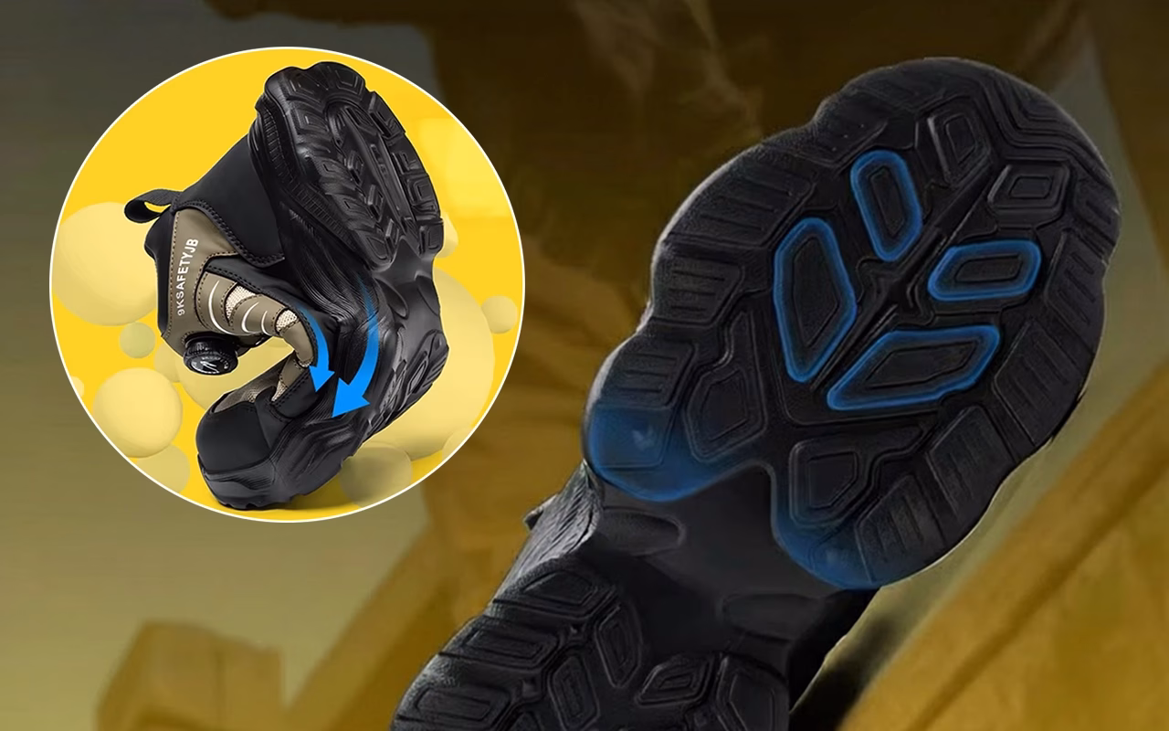 Stalen versteviging beschermt de tenen tegen vallend gereedschap of puin. De steekbestendige zool voorkomt dat scherpe voorwerpen uw voeten bereiken.