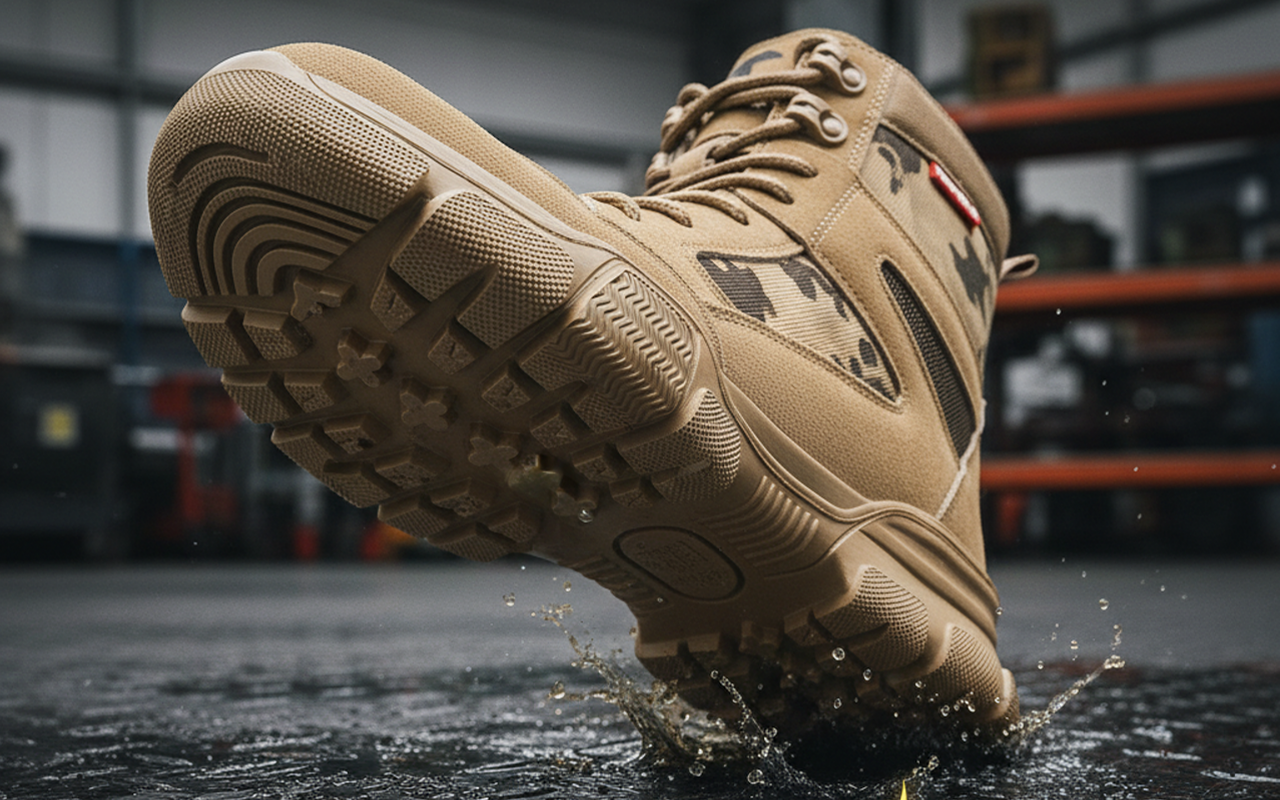 Speciale zool heeft extra grip om plotseling uitglijden of vallen te voorkomen. Betrouwbare tractie laat je zelfverzekerd bewegen over ruwe of olieachtige ondergrond.