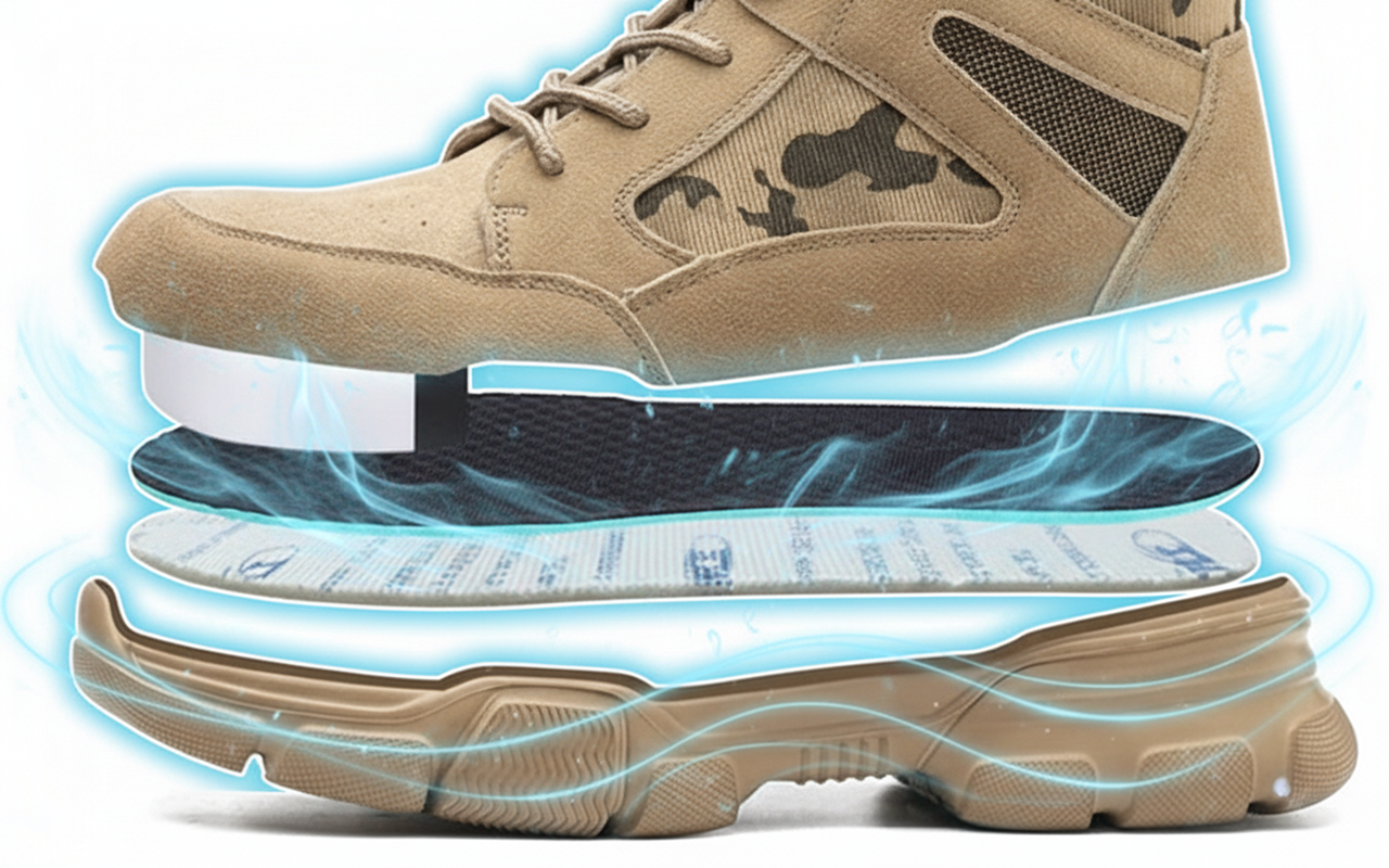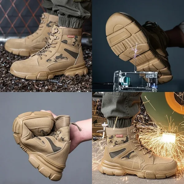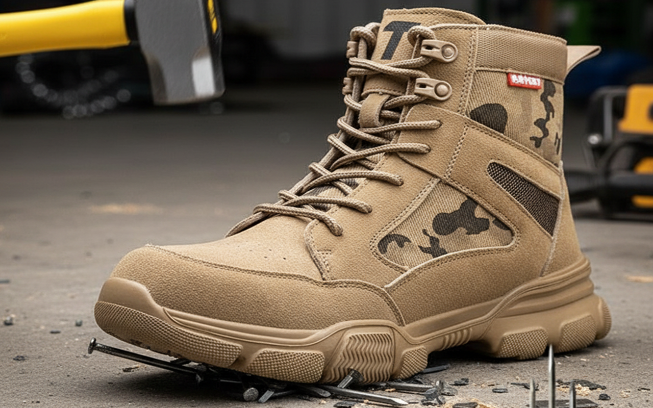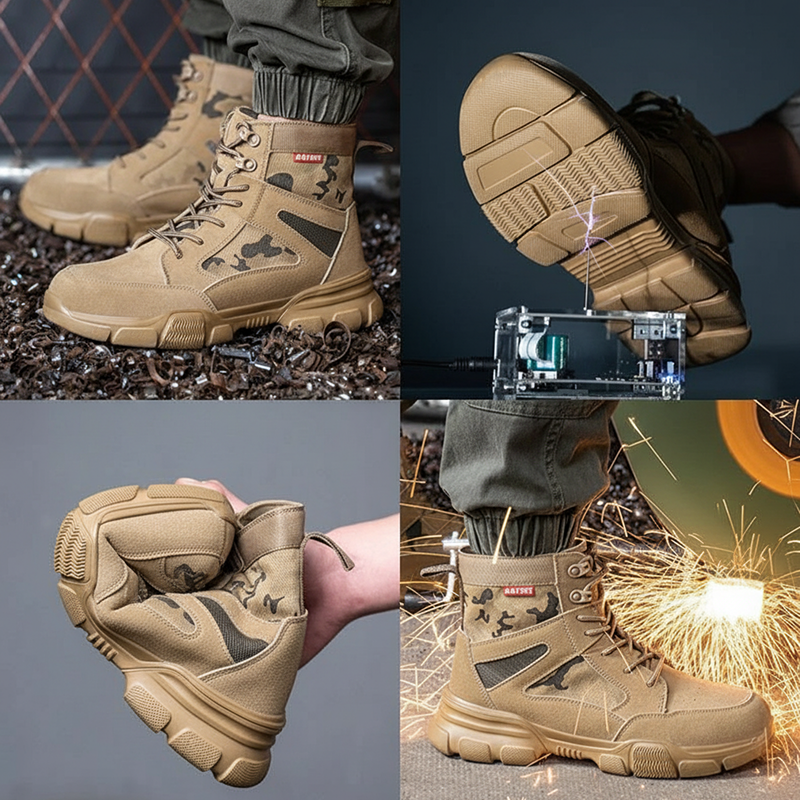 Versterkt staal beschermt tegen scherpe voorwerpen of zware impact. De stevige zool weerstaat eenvoudig doorboringen van spijkers of puin.