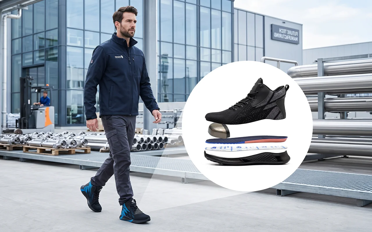 Ik ben een bezorger die zware dozen sjouwt. Deze schoenen met stalen neus voelen licht, beschermen als er iets uit de vrachtwagen glipt en de schokdemping voorkomt dat mijn onderrug het uitschreeuwt.