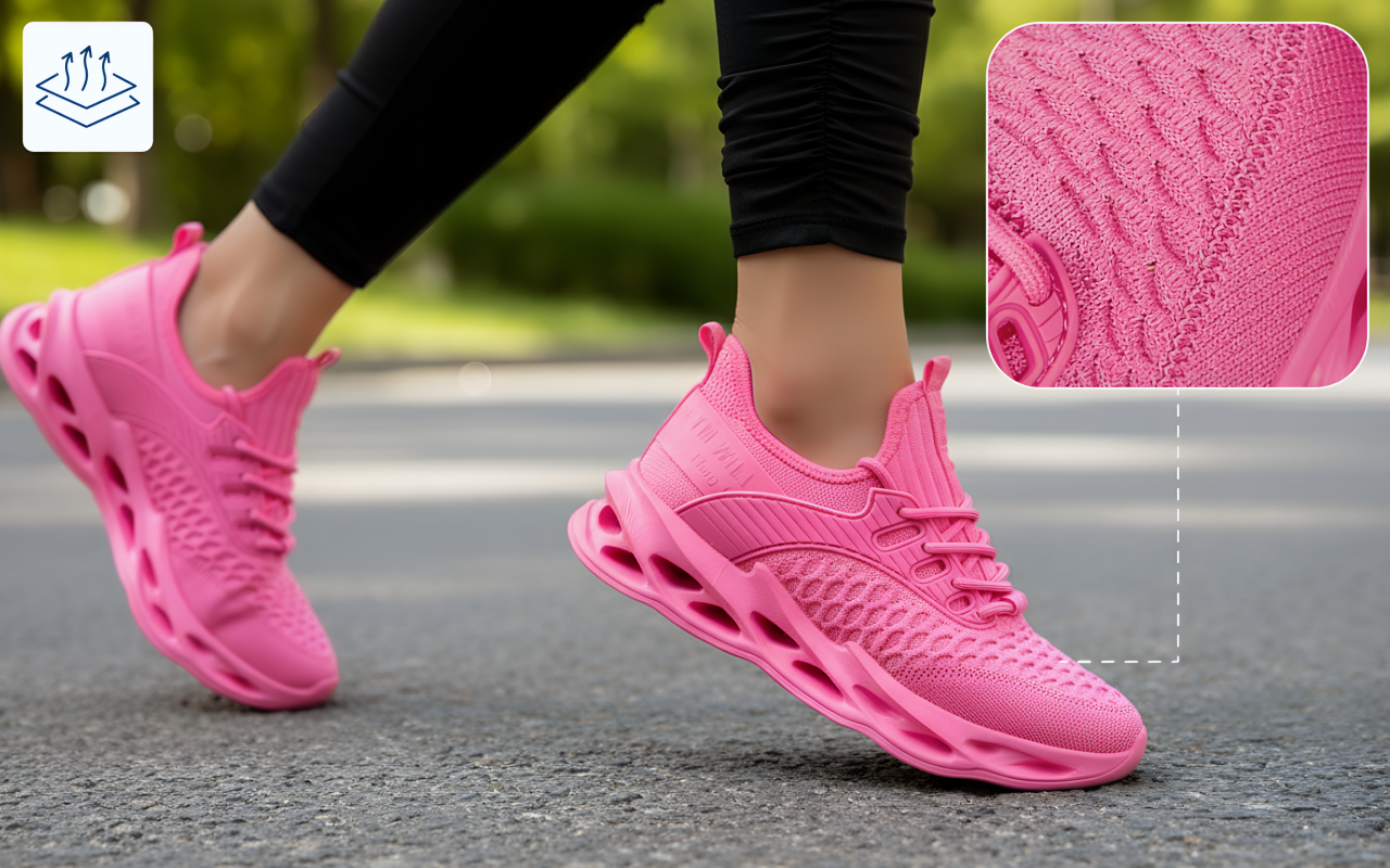 Het mesh-bovenwerk helpt je huid droog en fris te houden. Neem afscheid van zweterig ongemak op drukke dagen.