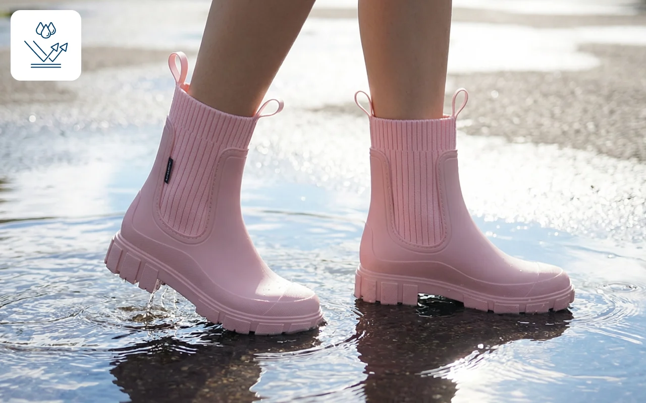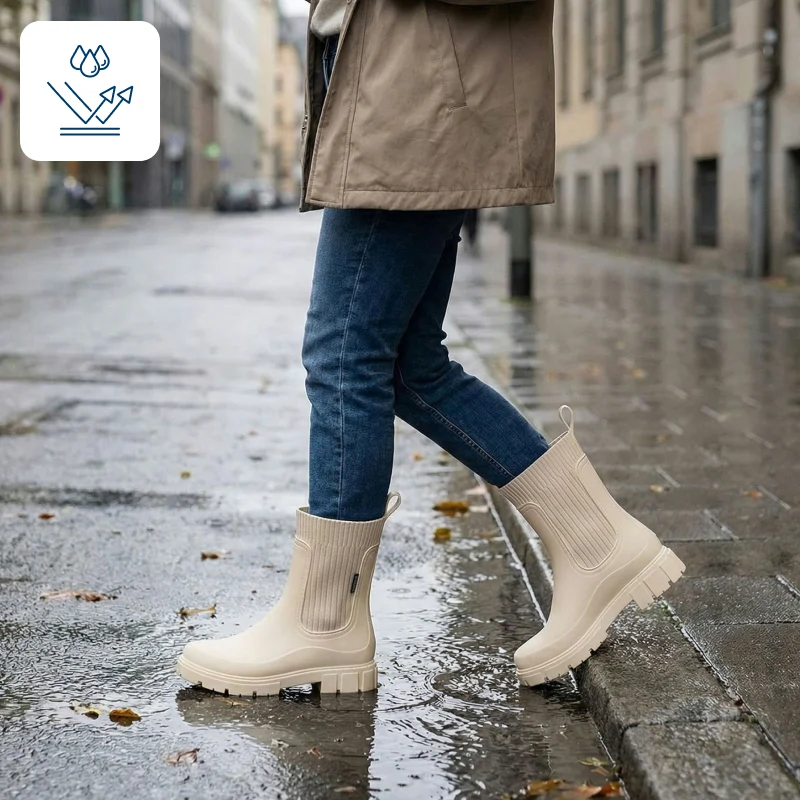 De regen blijft buiten terwijl je voeten warm en fris blijven. Ga gerust de stad in, zelfs als er plassen op straat liggen.
