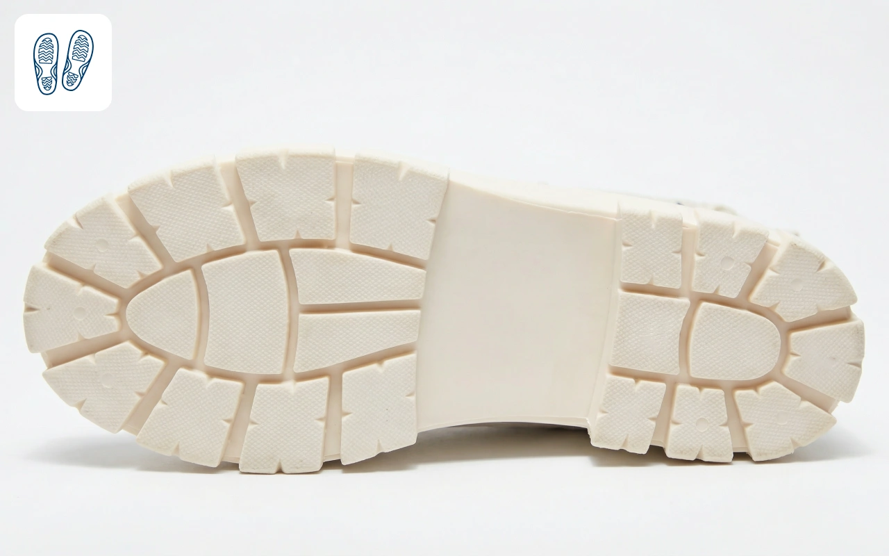 Ik vind het fijn dat deze laarzen nooit wegglijden op natte vloeren. Ik droeg ze een hele dag in de stad en voelde me steeds stabiel, zelfs op gladde tegels en stoepen.