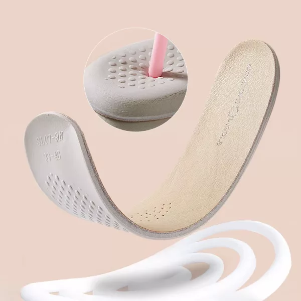 De antislip onderzijde houdt de inlegzool stevig op zijn plaats in uw schoen. Het voorkomt ongewenst verschuiven tijdens het lopen, wat zorgt voor blijvend comfort en ondersteuning.