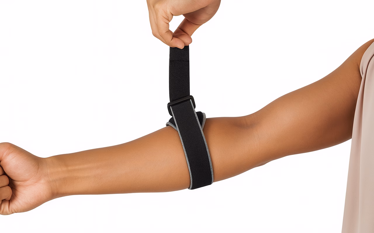 Deze band houdt mijn elleboog de hele dag comfortabel op het werk. Typen op mijn computer maakt mijn onderarm niet meer pijnlijk zoals vroeger.